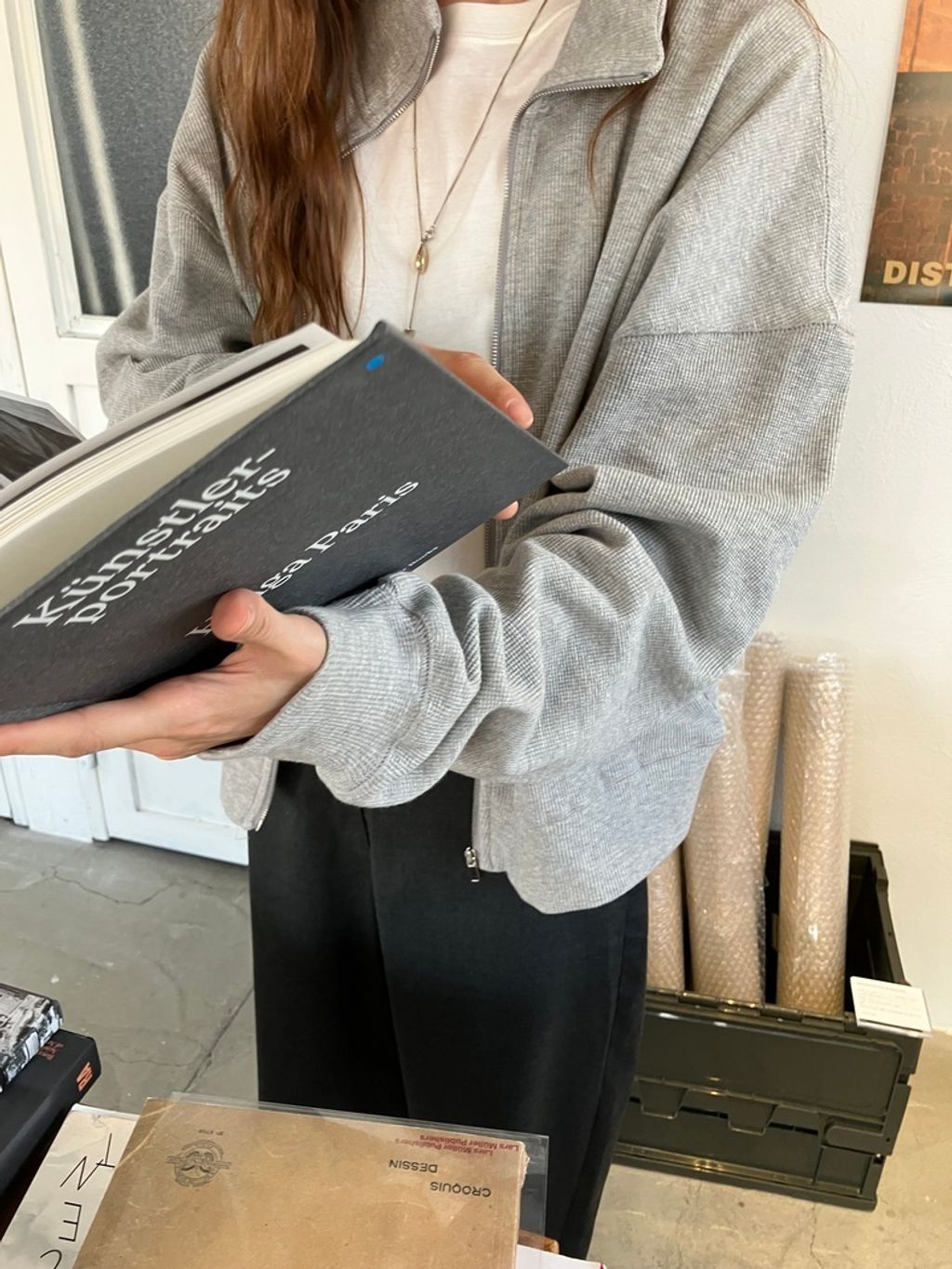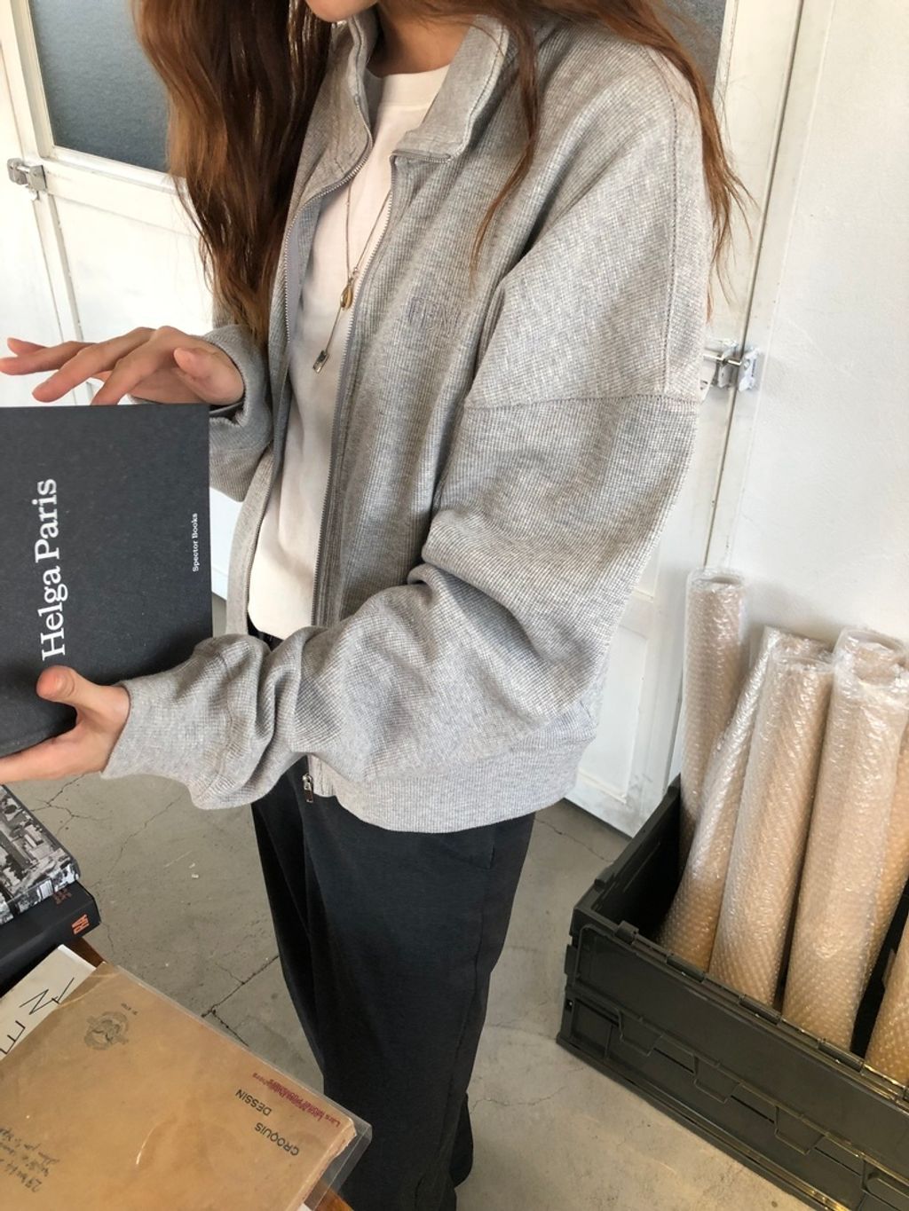 部落客自訂品牌 純棉彈性華夫格立領外套/2 colors