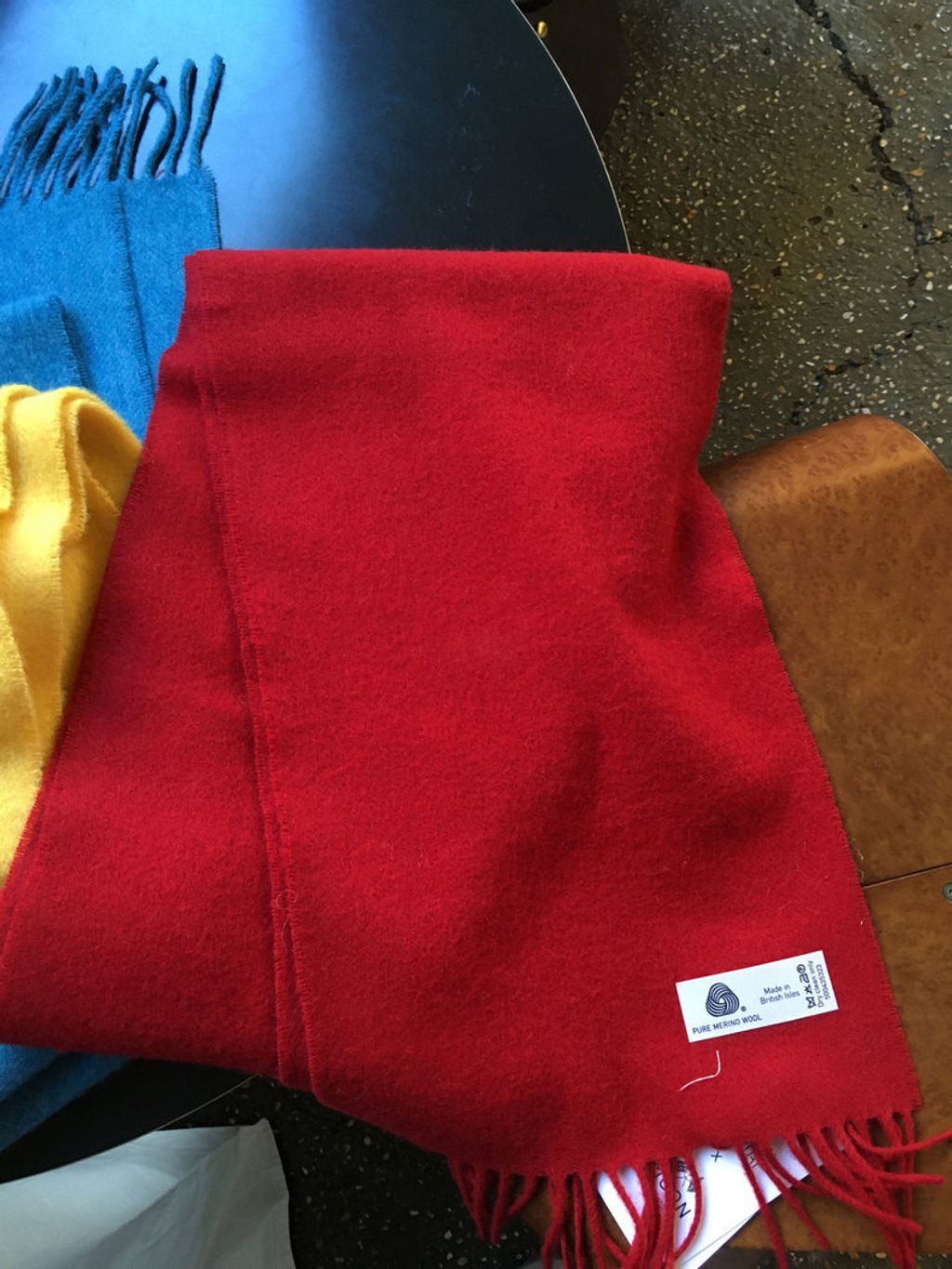 飽和色系的圍巾很可以凸顯秋冬一成不變的穿搭