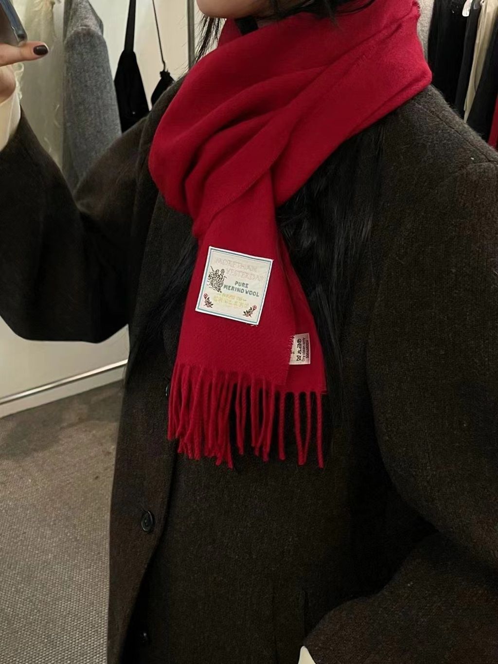 [英國進口羊毛MOON] 設計師款 MONE同款100% 美麗諾羊毛素色流蘇圍巾/5 colors