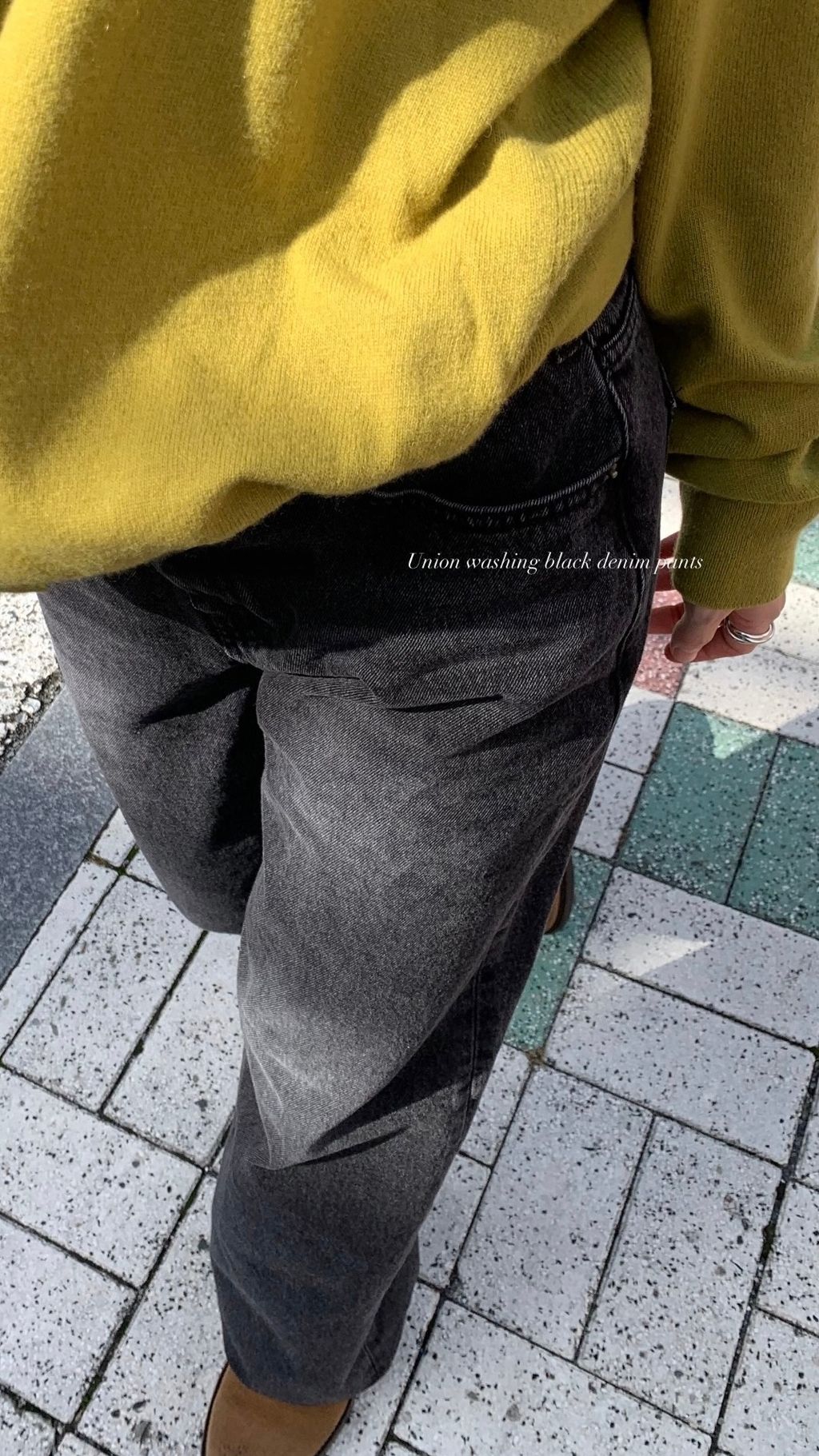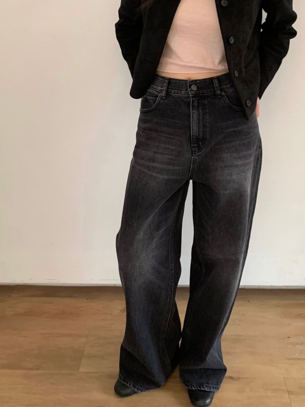 設計師款 黑色水洗刷白直筒寬褲/color