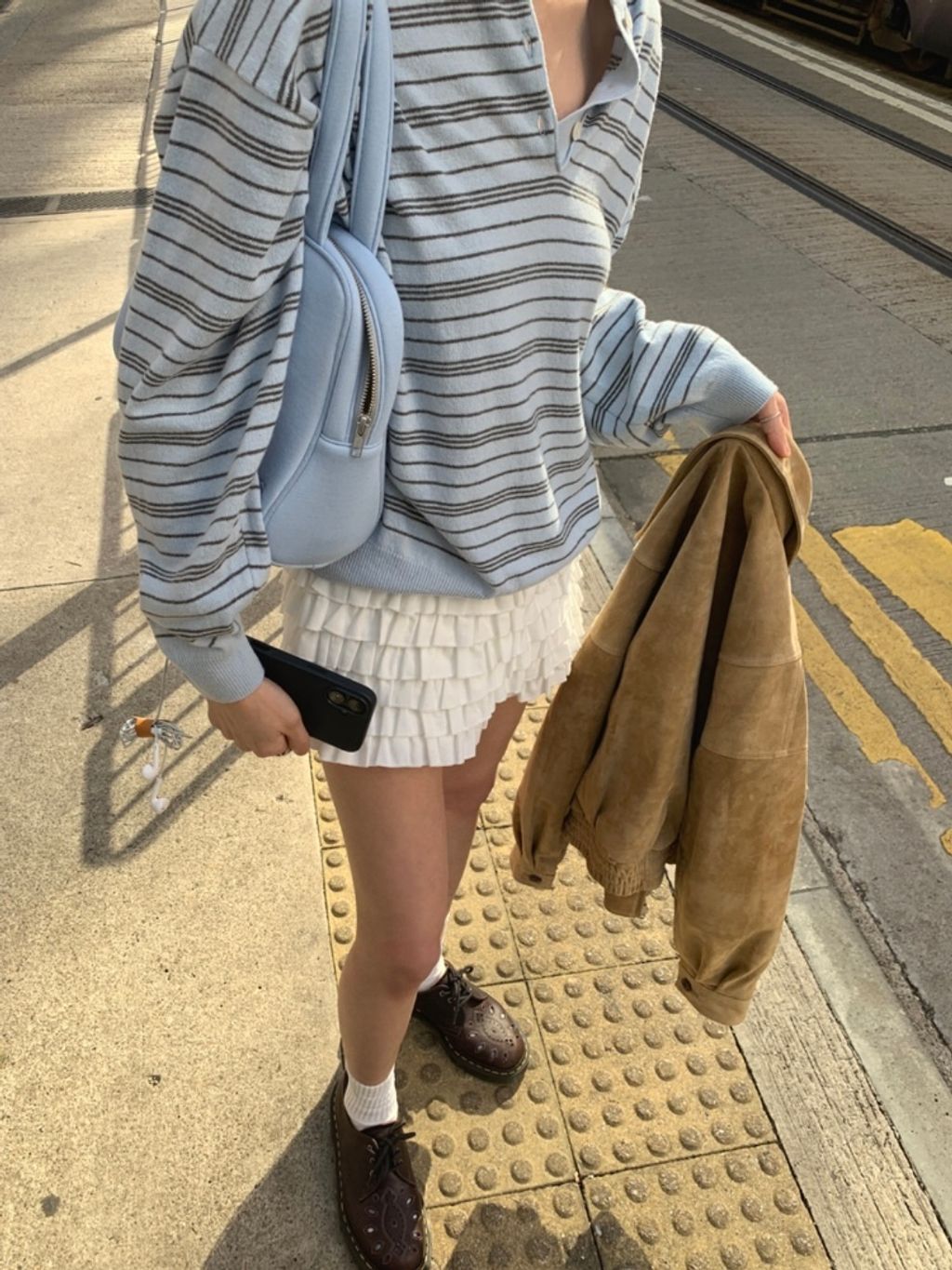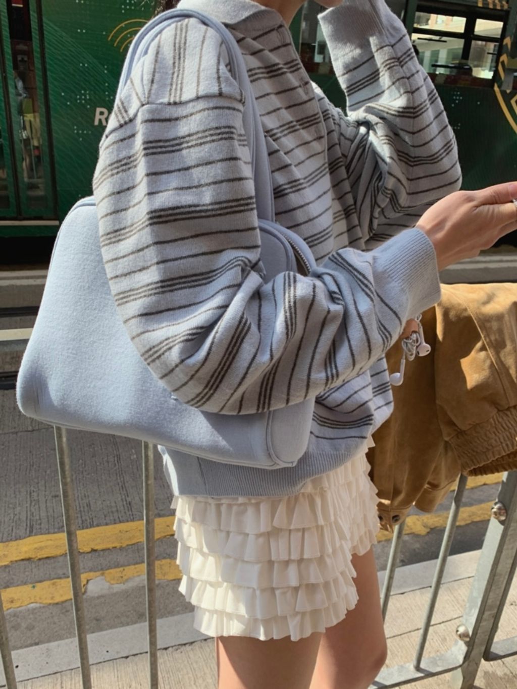 顏色是水藍色灰條紋與奶油亮藍條紋