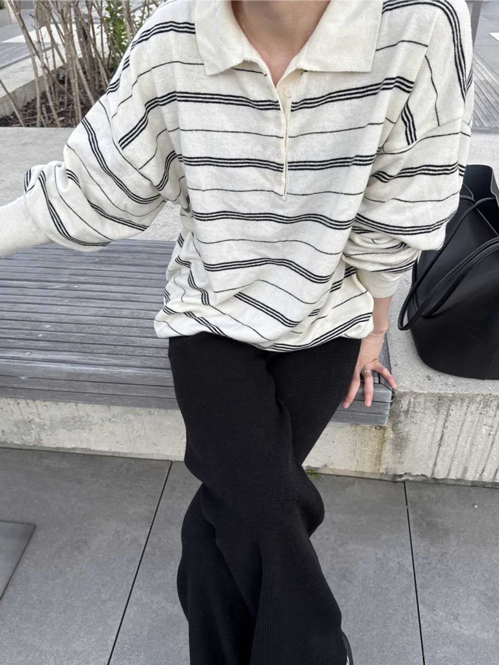羊毛條紋polo領口真上衣/3 colors