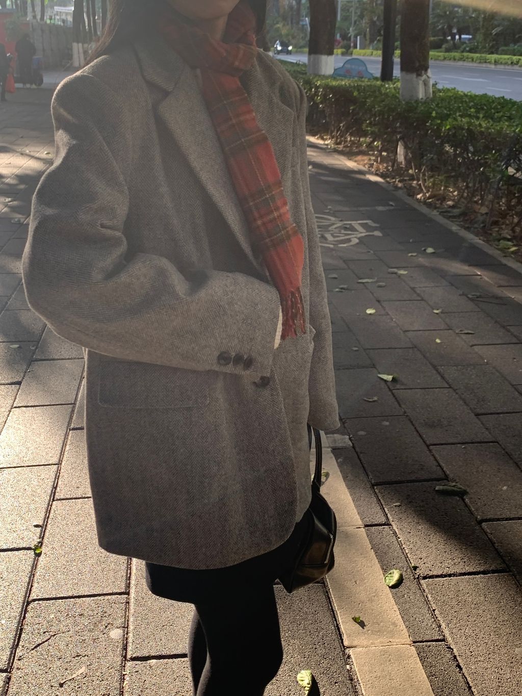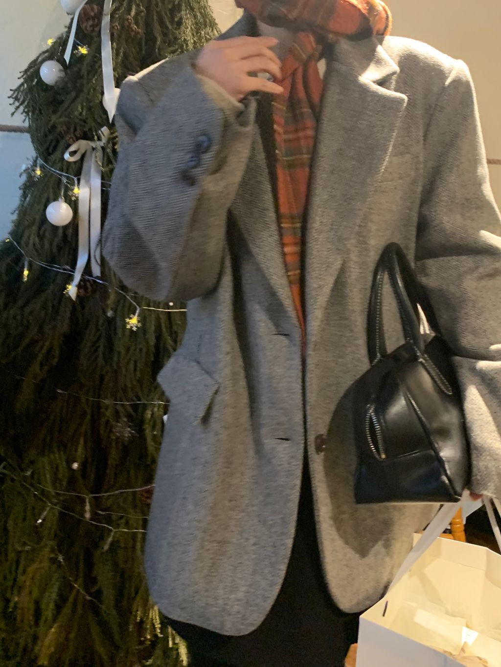 灰棕色人字紋羊毛鋪棉西裝外套/color